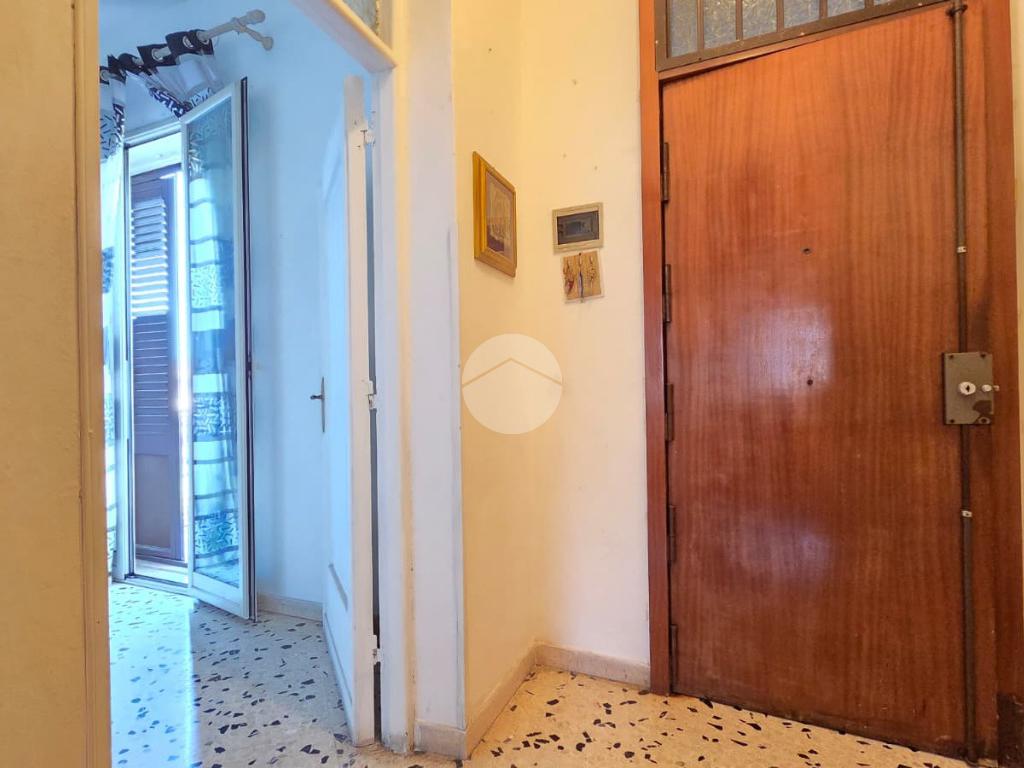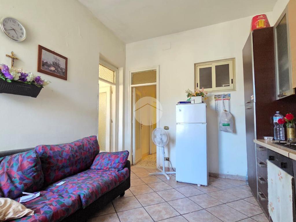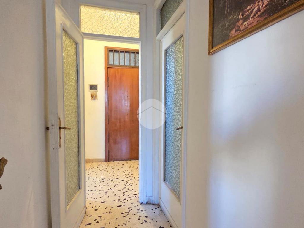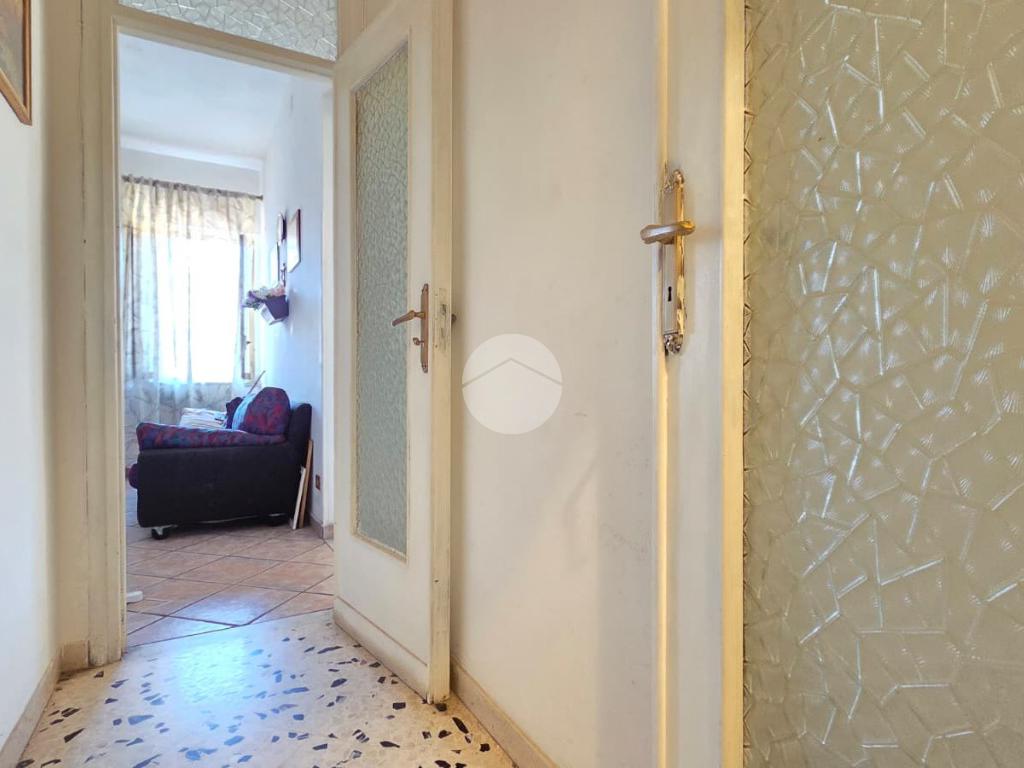 La casa si apre su un ingresso che conduce a un disimpegno, dal quale si distribuiscono gli ambienti principali. La zona giorno, composta da una cucina e un soggiorno adiacente, è uno spazio funzionale e luminoso, facilmente trasformabile in un moderno open space. La camera da letto matrimoniale e il bagno offrono spazi ben definiti e un pratico ripostiglio completa la proprietà. I pavimenti in graniglia, tipici dell'epoca, e i soffitti alti conferiscono all'appartamento un fascino unico. Le porte interne sono in legno e gli infissi in alluminio.
